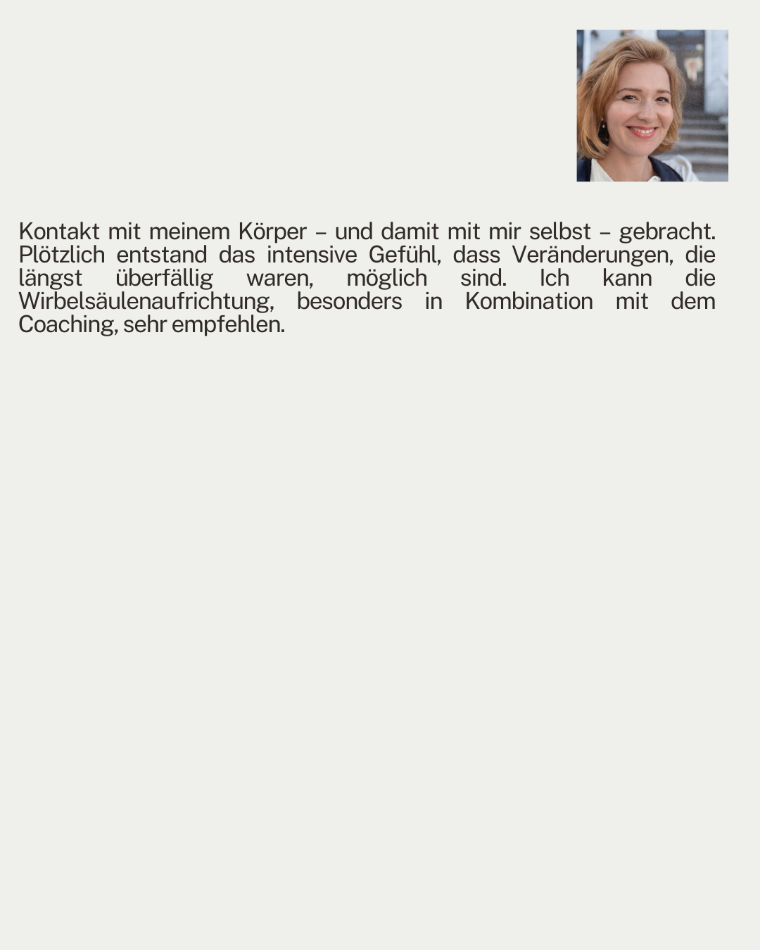 Die ganzheitliche Aufrichtung ersetzt keine ärztliche oder heilpraktische Behandlung. Es werden keine Diagnosen gestellt und keine Heilversprechen abgegeben. Bitte wende dich bei gesundheitlichen Beschwerden immer an deine Ärztin oder deine Heilpraktikerin (m/w/d).